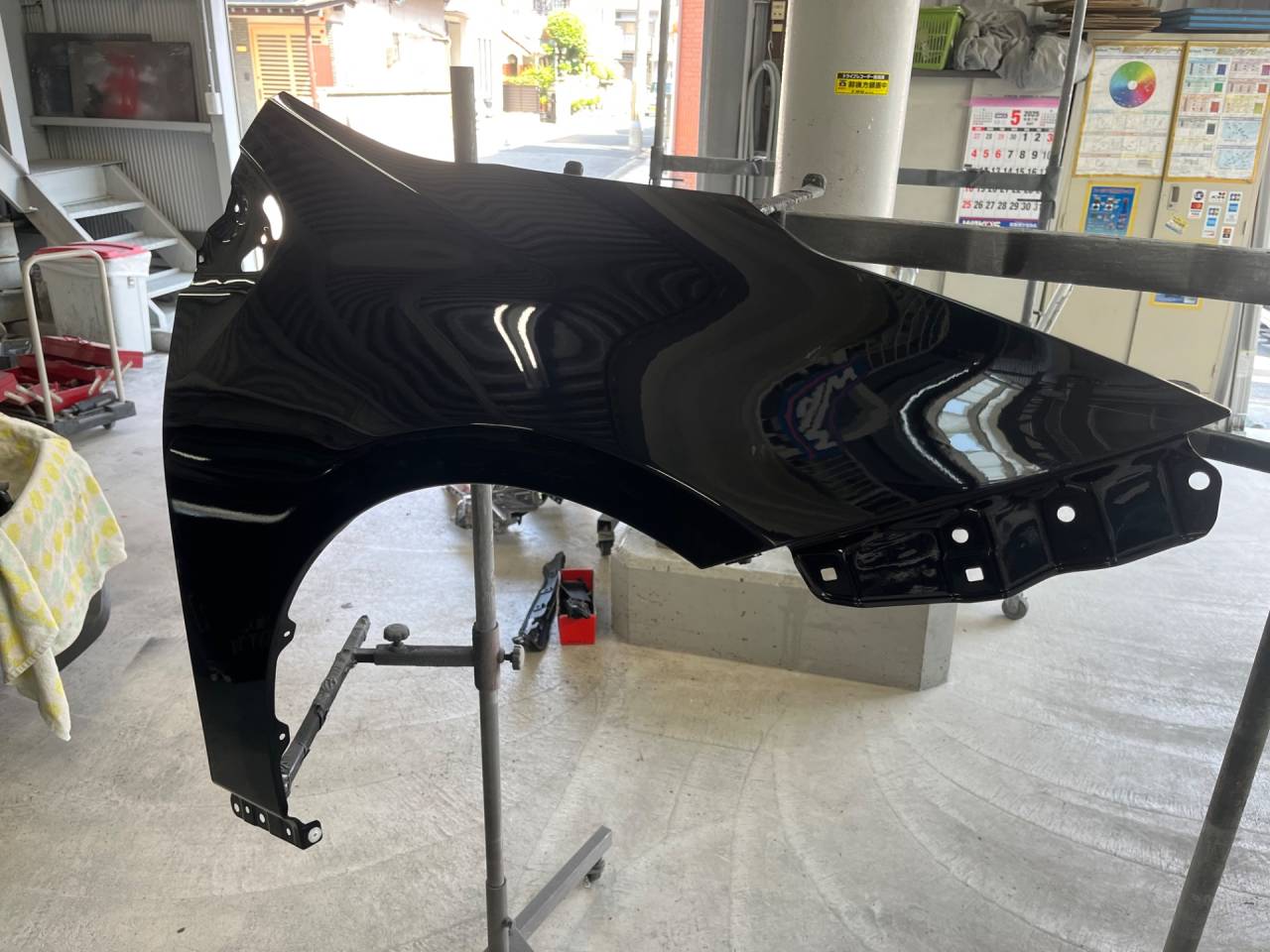 プリウス 右フロントフェンダー修理 2025/06/19 プリウス右フロントフェンダー 入庫時 今回のお客様は、プリウス。 右フロントフェンダーの修理依頼です。 こちらも板金塗装で修理させていただきます😤😤 交換だと作業工程が少なく、作業期間も短いのですが、どうしても高額になってしまいがち。。。 そんな時は板金塗装で修理をすることにより、低予算になります😊😊 プリウス右フロントフェンダー 作業中 こちらは板金、塗装後の写真になります。 板金でほぼ原形まで元に戻します。 パテで最終成形と表面を滑らかにし、塗装します。 まだまだ細かな作業工程があるのですが、長くなっちゃいますので次回にします💦💦 プリウス右フロントフェンダー 完成 完成写真です。 形も元通りになり、調色もうまくいってます! こちらのお客様は普段お仕事でも使用されているとのことだったので、最短でお直しさせていただいております。 車の事故により、キズヘコミの度合い、修理範囲など様々です。 一度お問い合わせくださいね! 無料見積させていただきます😊😊 施工事例