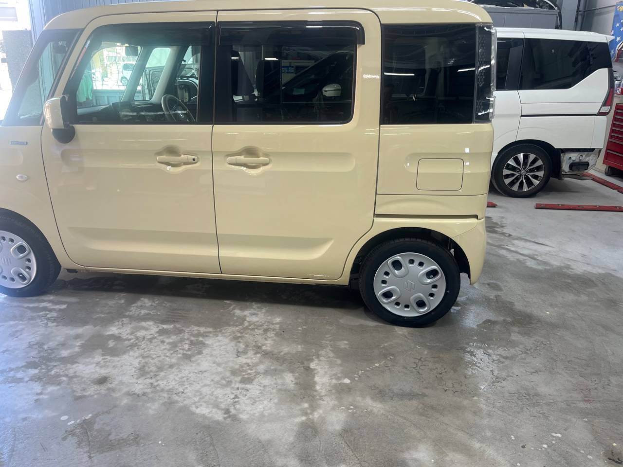 スズキ スペーシア 左スライドドア、左クオーターパネル板金塗装 2025/08/27 スズキスペーシア 入庫時 お久しぶりです😅 皆様お元気ですか?? 朝晩少しだけ暑さが増しなった気がしますが、 日中はまだまだ暑いですね。。 お盆休みのご案内から投稿が出来ていませんでした💦 今回のお客さまはスペーシア。 左、スライドアとクオーターパネルの修理です。 以前、お見積りをさせていただき、後日、日程調整させていただきました。 ドンドン進めてまいりましょう!! スズキスペーシア 完成 完成写真です。 ヘコミ箇所も原形に戻し、 色調整もばっちりです✨✨ 作業期間は3日間いただき、4日目お引渡しでした お客様に大変喜ばれ、嬉しい限りです😊😊 ARYオートリペアでは、キズヘコミはもちろん エアロパーツの塗装取付、ナビなどの電装関係等 お車のことなら何なりとご相談下さい。 お役に立てるよう頑張ります🤗🤗 施工事例