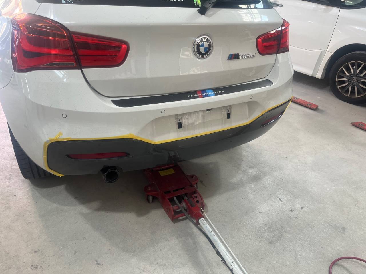 取付前今回のお客様は、BMWリアバンパーガーニッシュの取付とマフラー交換のご依頼ですエアロ、マフラーなどはお持込されております。穴あけ加工を施し、ボルトと両面テープでガッチリと取付をしておりま…